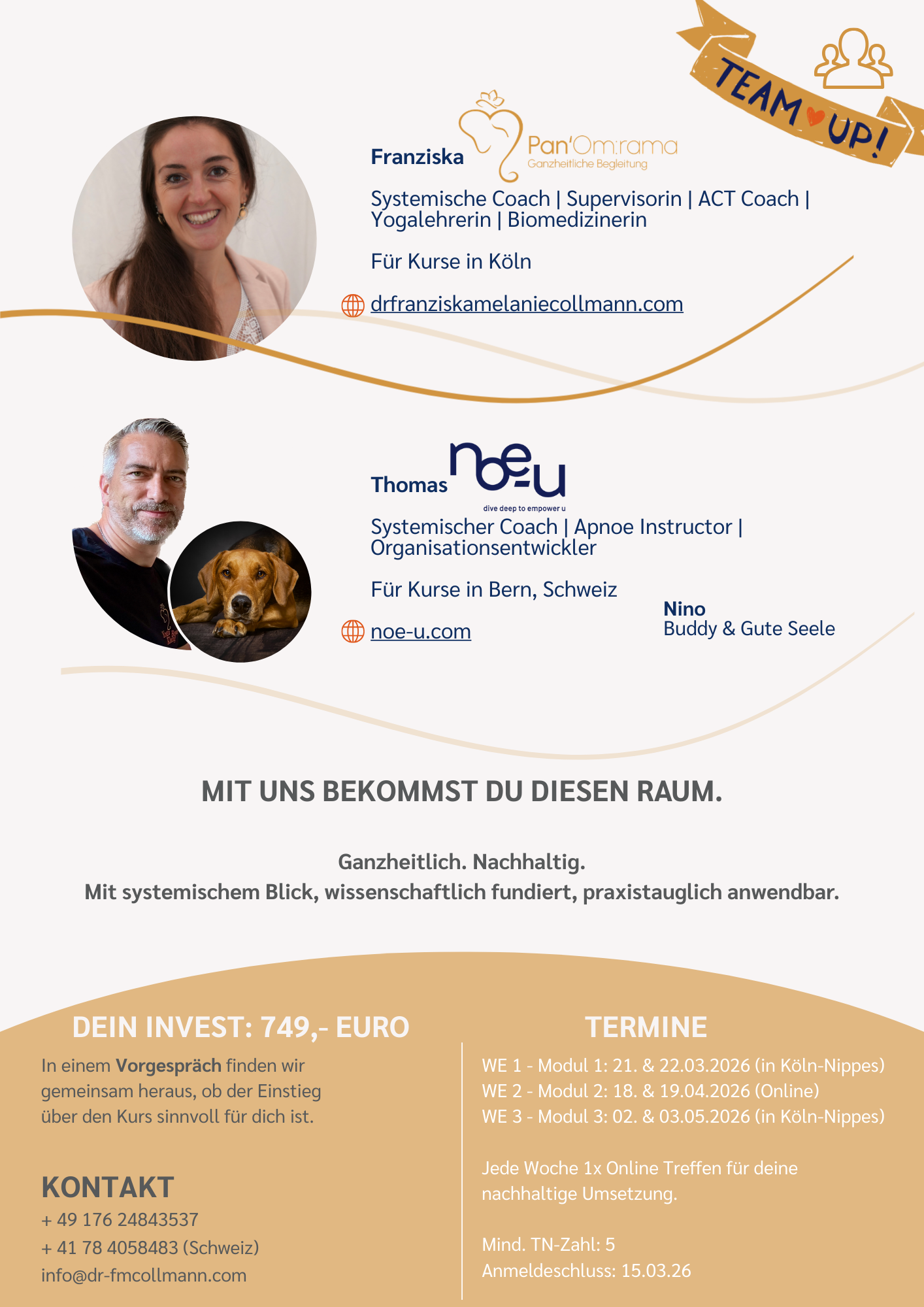 Wir betrachten das Innere, das Zwischenmenschliche und deine Systeme mit den jeweiligen Umwelten. Und verbinden diese Ebenen.